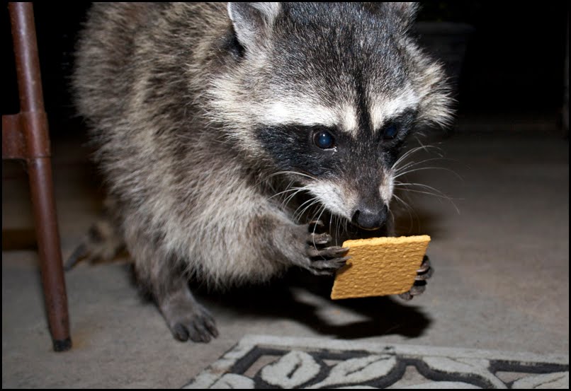 So far this spring two things are clear. One: Stubby and Little One come to spend time in our yard every night. Two: They are extremely spoiled and love crackers! There is no shame in the begging that they silently do for the square little pieces of snack heaven.